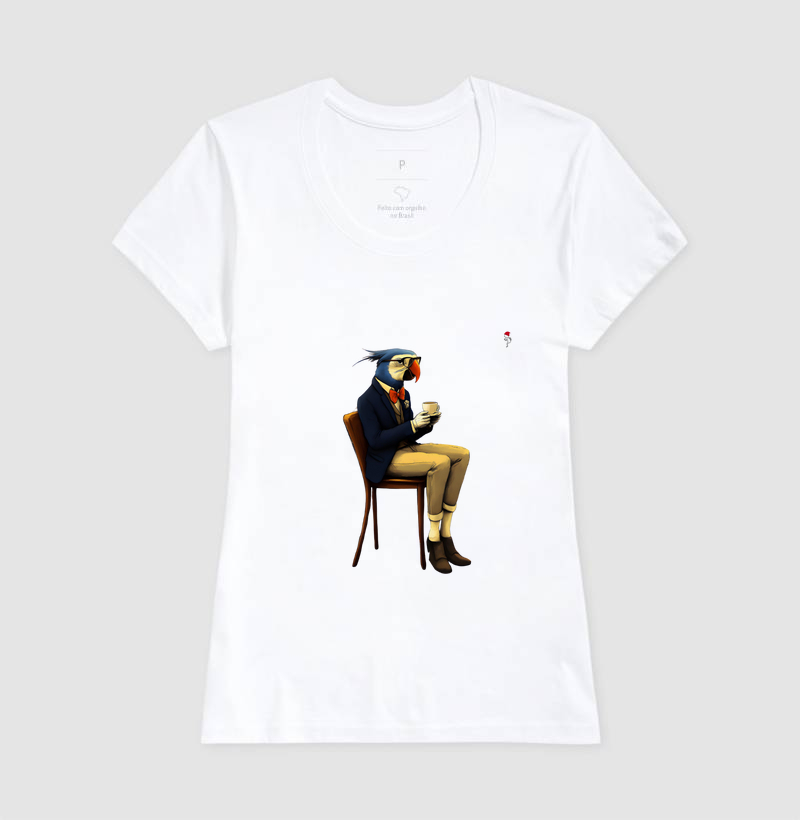 Uma arara-azul elegante, desfrutando de um café em uma pose tranquila, traz vida e cor a esta estampa. Perfeita para quem ama o Brasil e quer começar o dia com estilo e bom humor.