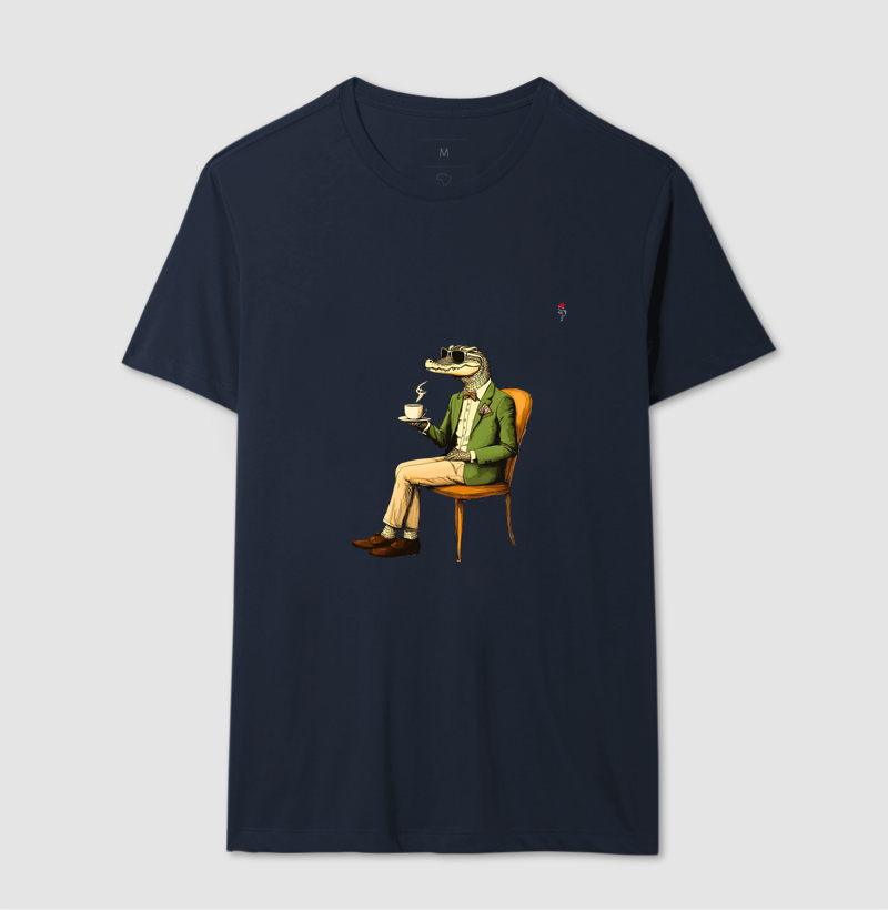 "Nosso Jacaré Açu não dispensa uma boa pausa para o café! Com um olhar relaxado e uma xícara na mão, ele nos lembra que até os répteis sabem aproveitar um bom café. Uma estampa divertida e única que traz um toque de charme e descontração para seu dia."