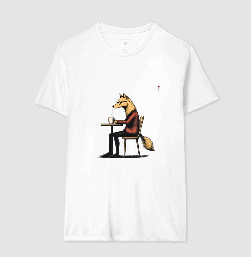 Nossa estampa traz o elegante lobo-guará em um momento descontraído, saboreando uma xícara de café. Um toque de charme selvagem para os apaixonados pela fauna brasileira e pelas pausas para um bom café.
