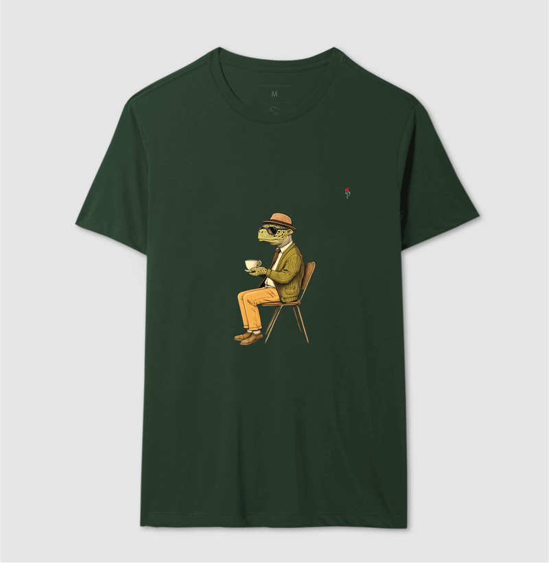 Desacelere com estilo! Nossa estampa traz uma tartaruga relaxando com uma xícara de café, mostrando que até a vida devagar merece uma pausa saborosa. Perfeita para quem valoriza momentos tranquilos e aconchegantes.